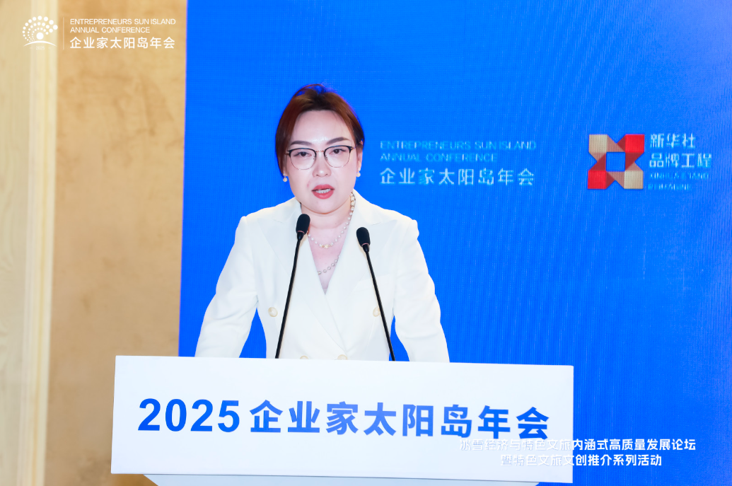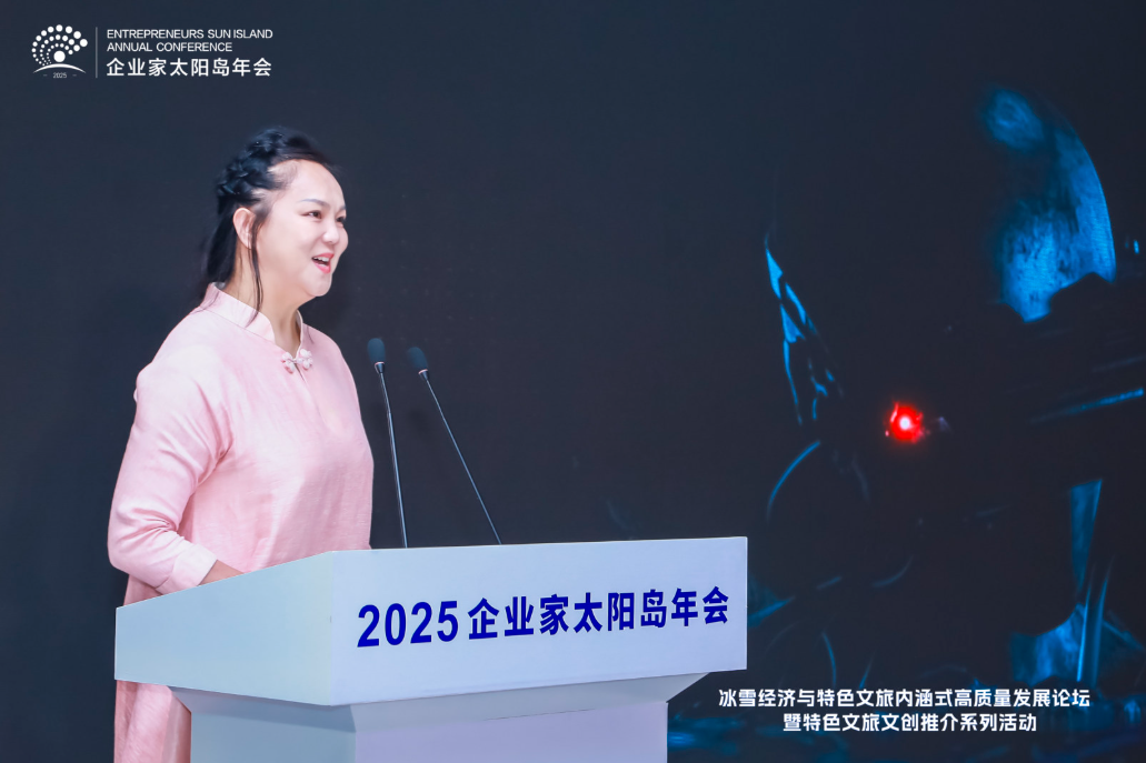 8月2日,2025太陽島企業家年會“冰雪賦能發展 文旅創引未來”冰雪經濟與特色文旅內涵式高質量發展論壇在哈爾濱舉行。圖為哈爾濱馬迭爾文化旅游投資集團有限公司黨委副書記、副總經理秦曉燕發表演講