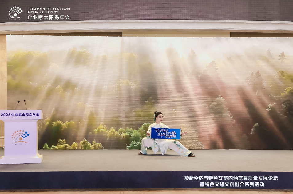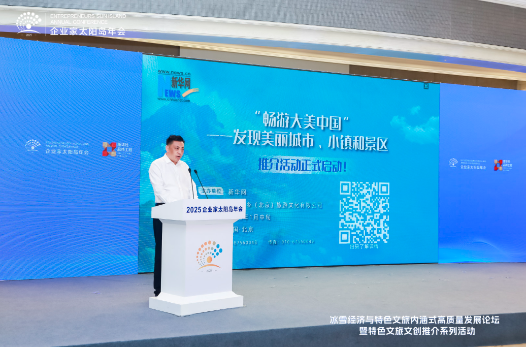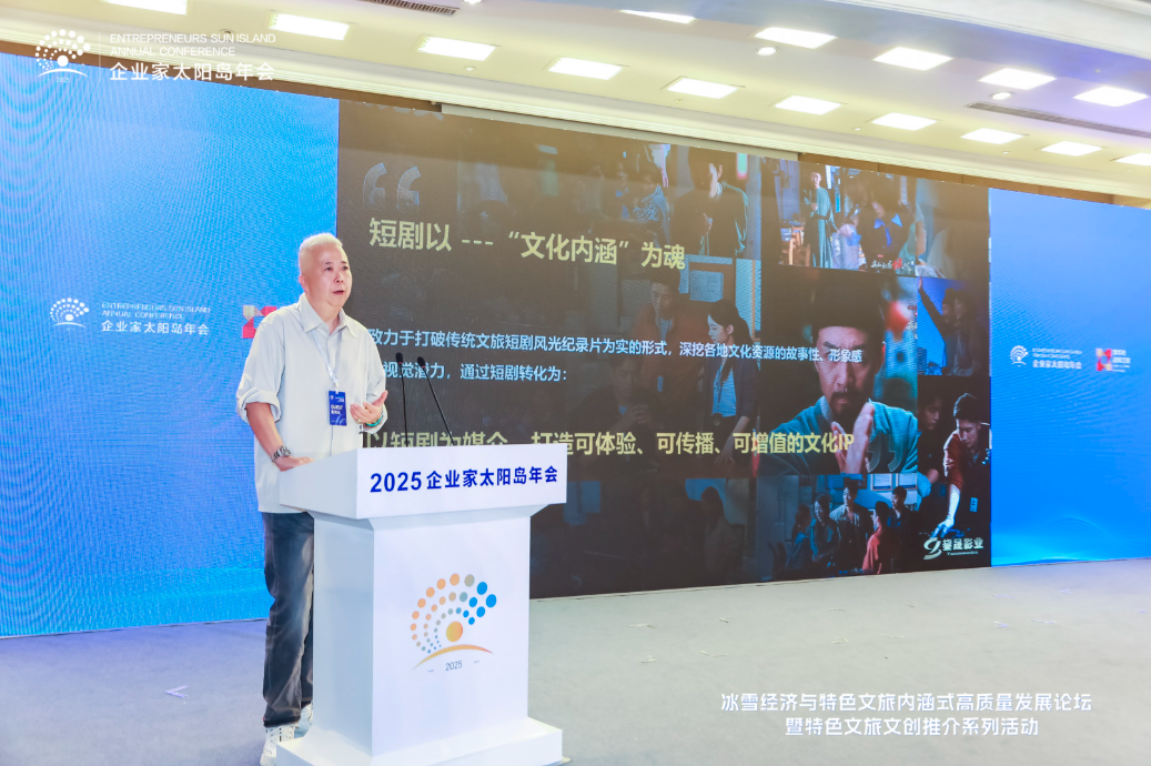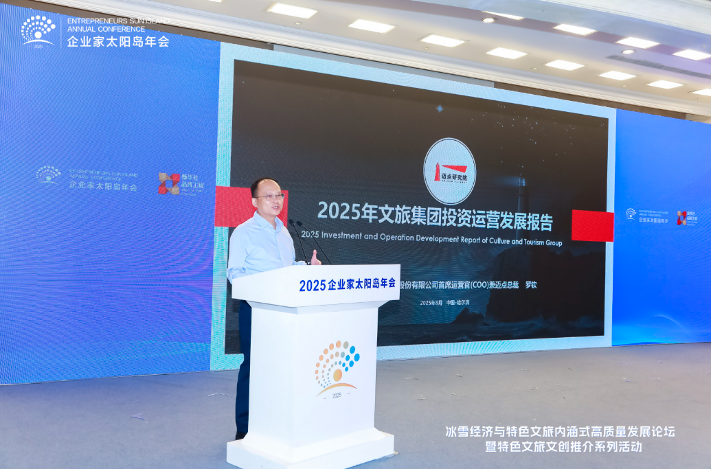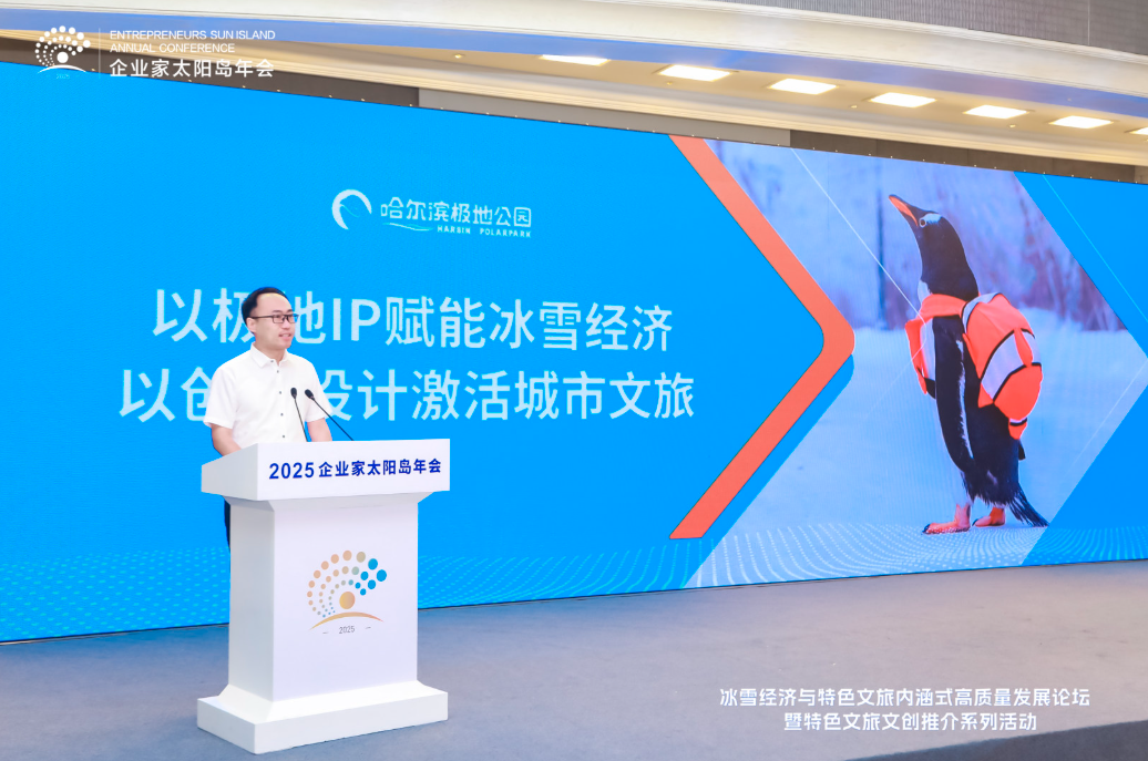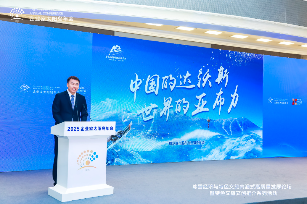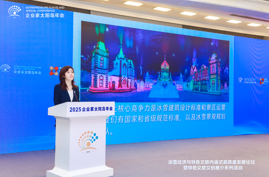 8月2日,2025太陽島企業家年會“冰雪賦能發展 文旅創引未來”冰雪經濟與特色文旅內涵式高質量發展論壇在哈爾濱舉行。圖為美麗城鄉(北京)旅游文化有限公司總經理劉浩演講