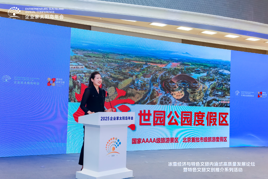 8月2日,2025太陽島企業家年會“冰雪賦能發展 文旅創引未來”冰雪經濟與特色文旅內涵式高質量發展論壇在哈爾濱舉行。圖為北京世園投資發展有限責任公司張瀟瀟作特色文旅推介