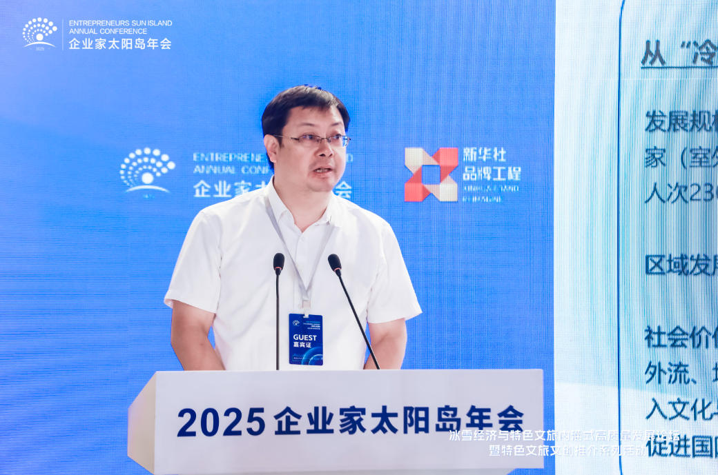 8月2日,2025太陽島企業家年會“冰雪賦能發展 文旅創引未來”冰雪經濟與特色文旅內涵式高質量發展論壇在哈爾濱舉行。圖為文化和旅游部科技教育司原司長孫若風發表主旨演講