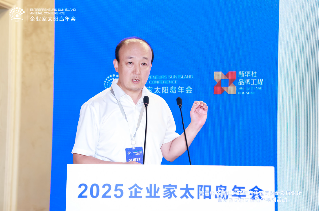 8月2日,2025太陽島企業家年會“冰雪賦能發展 文旅創引未來”冰雪經濟與特色文旅內涵式高質量發展論壇在哈爾濱舉行。圖為新華網黨委書記、董事長儲學軍致辭