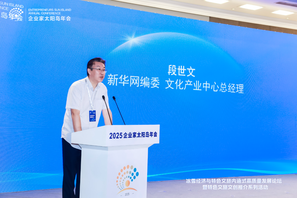 8月2日,2025太陽島企業家年會“冰雪賦能發展 文旅創引未來”冰雪經濟與特色文旅內涵式高質量發展論壇在哈爾濱舉行。圖為新華網編委、文化產業中心總經理段世文致辭