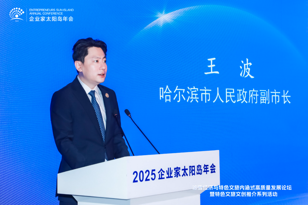 8月2日,2025太陽島企業家年會“冰雪賦能發展 文旅創引未來”冰雪經濟與特色文旅內涵式高質量發展論壇在哈爾濱舉行。圖為哈爾濱市人民政府副市長王波致辭