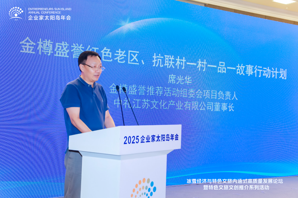 8月2日,2025太陽島企業家年會“冰雪賦能發展 文旅創引未來”冰雪經濟與特色文旅內涵式高質量發展論壇在哈爾濱舉行。圖為金樽盛譽推薦活動組委會項目負責人、中禮江蘇文化產業有限公司董事長席光華作特色文旅推介