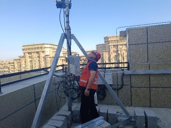 技術人員在華凌古樹小鎮小區樓頂檢查新天線