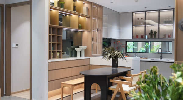 本次梵客家裝奧體中心店的一大亮點,便是在行業首創打造了“七宅一生”理念的實景樣板間。以人生中單身、二人世界、三口之家(嬰幼)、三口之家(兒童)、三代同堂、二孩之家、天倫之樂等七個人生不同階段的理想家為樣本,從高品質生活需求出發,洞悉人居設計與變化,呈現理想的家。這些樣板間都是由梵客家裝的個性化整裝打造,標配產品融合個性化選配項目,實現以人為本、量身定制的家裝解決方案。