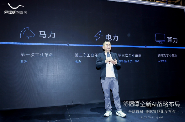 AI戰略布局首創睡眠智能體發布會現場,麒盛科技總經理黃小衛指出算力革命不僅是技術迭代,更是社會運行方式的根本變革。通過云計算與AI技術的發展,人類可更高效得調取資源,舒福德AI小舒正在打破科技發展與人類睡眠之間的困境,真正實現科技以人為本。