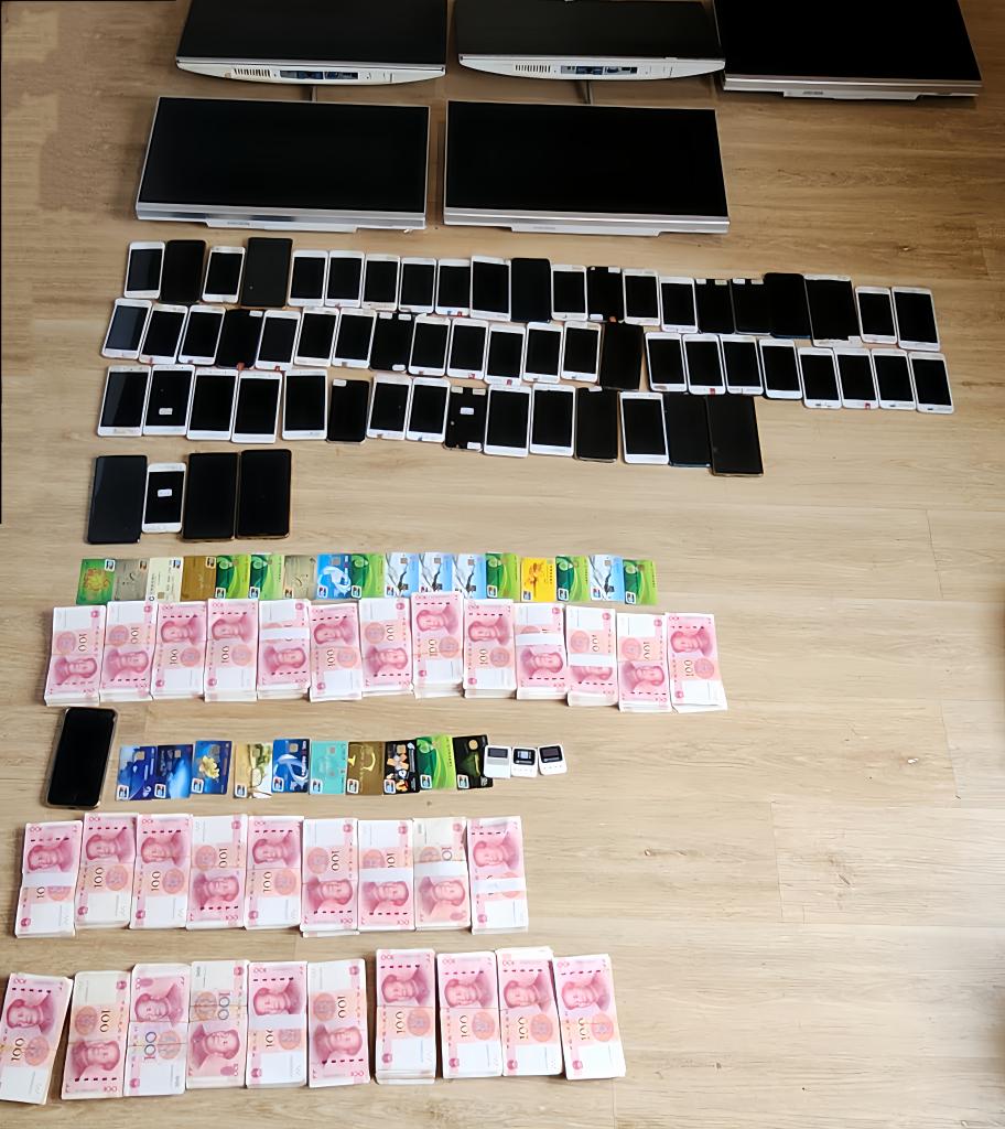 這是在抓捕現場查獲的作案工具和涉案現金。(受訪單位供圖)