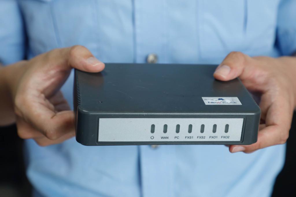 辦案民警介紹,這些居民家中的固定電話線終端多了一個閃爍著信號的“黑盒子”,這就是運行中的VOIP語音網關,可將境外網絡信號轉化為本地固話信號。部分被安裝“黑盒子”的用戶,誤認為這就是普通的“機頂盒”。