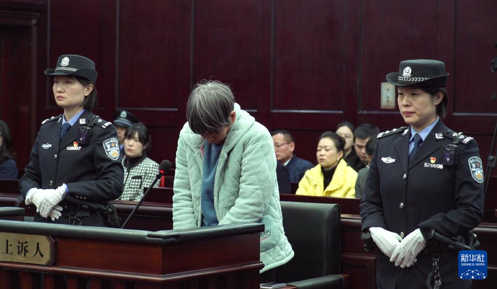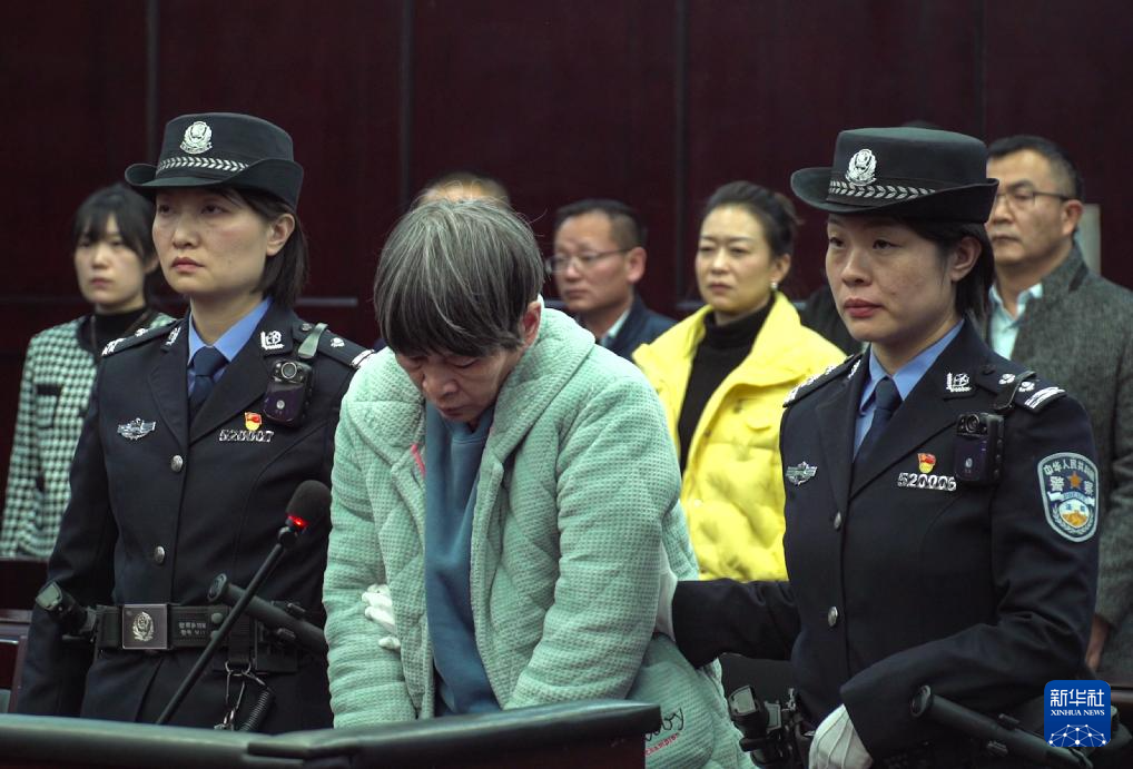12月19日,余華英(前中)在庭審現場(視頻截圖)。新華社發
