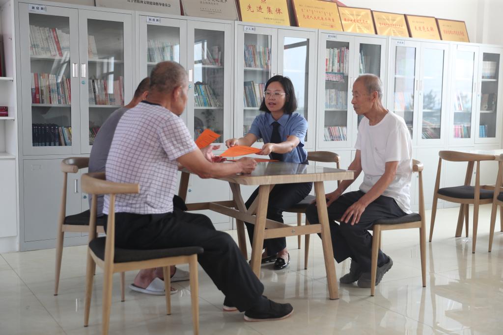 2024年8月7日,遼寧阜新蒙古族自治縣人民檢察院檢察人員在于寺鎮官營子村向村民發放普法宣傳材料。新華社記者 龍雷 攝