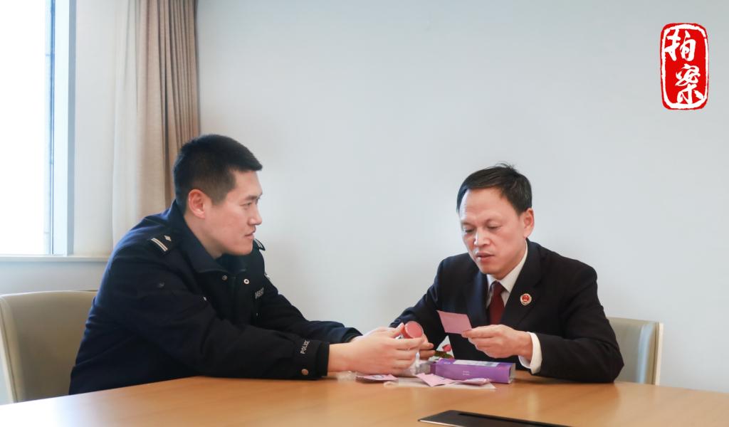 圖為承辦檢察官與公安民警研判涉案減肥產品。(蘇州工業園區檢察院供圖)