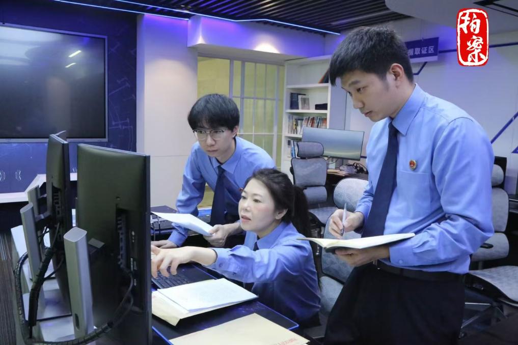 2024年6月26日,承辦檢察官與技術部門人員對涉案電子證據材料進行審查分析。(上城區人民檢察院供圖)