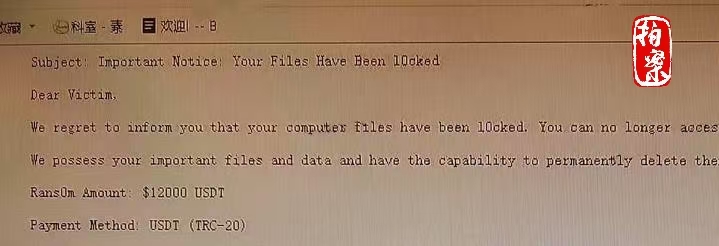 這是提示文件已經被鎖定的勒索信息。(杭州市公安局上城分局供圖)