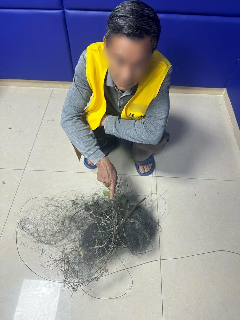 圖為基層干部排查發現非法捕鳥網。(饒平縣林業局供圖)