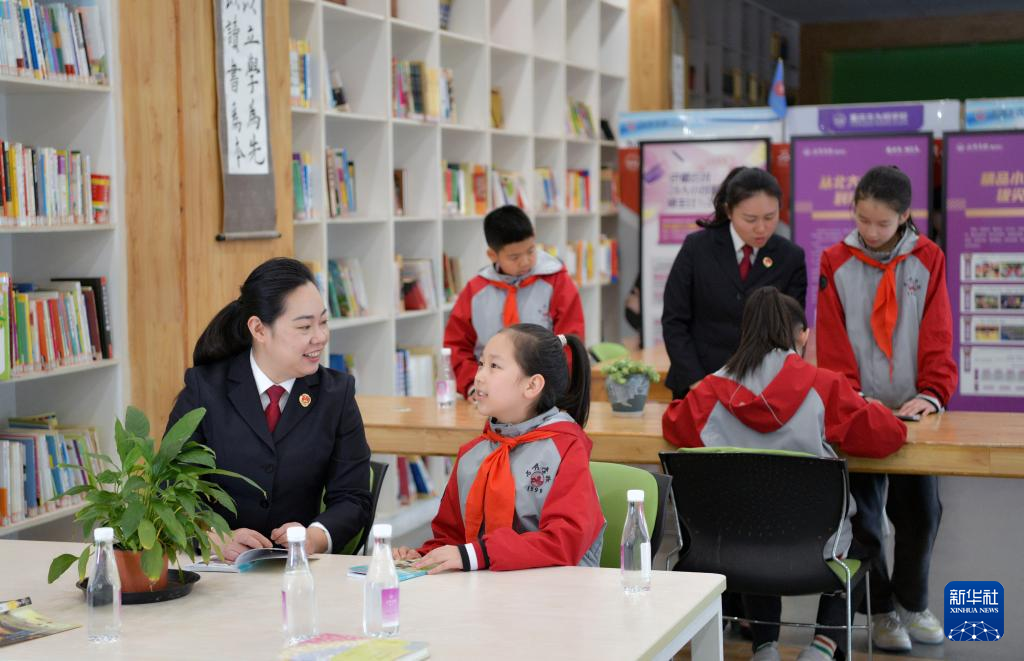 3月20日,重慶檢察未成年人保護工作團隊代表梅玫(左一)在重慶市為明學校與學生交流。新華社發