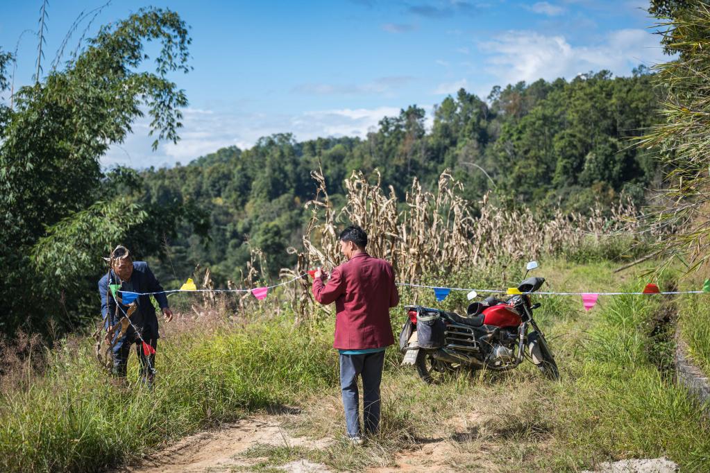 11月19日,在云南省保山市龍陵縣龍山鎮,龍陵縣黃氏蜂業有限公司工作人員檢查一處警示線。