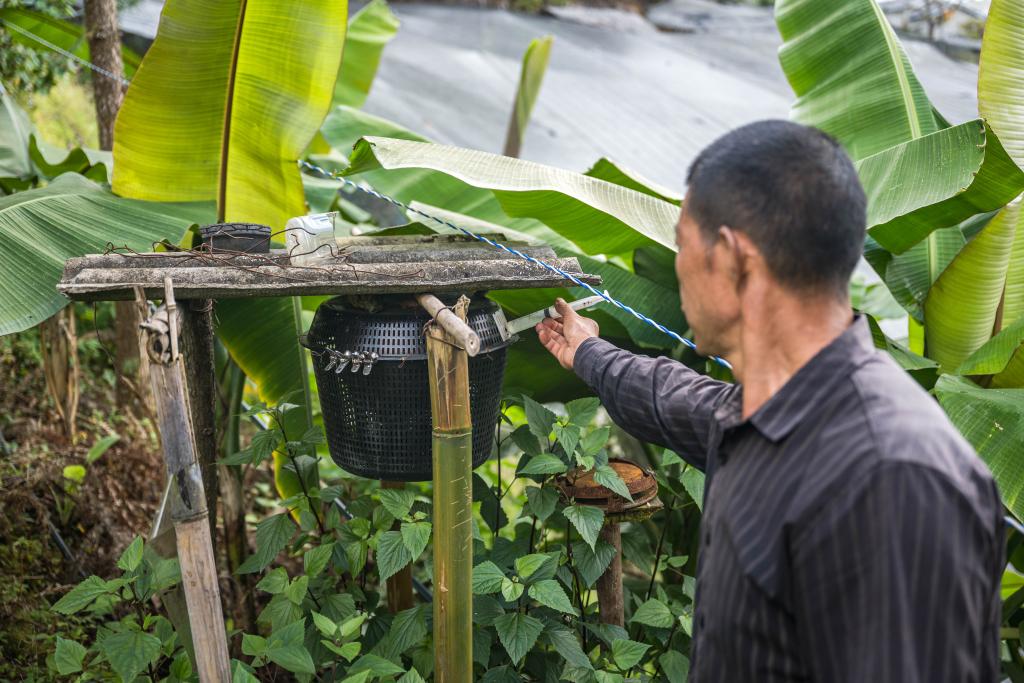 11月19日,在云南省保山市龍陵縣龍山鎮河頭村,一名村民查看養殖的胡蜂。