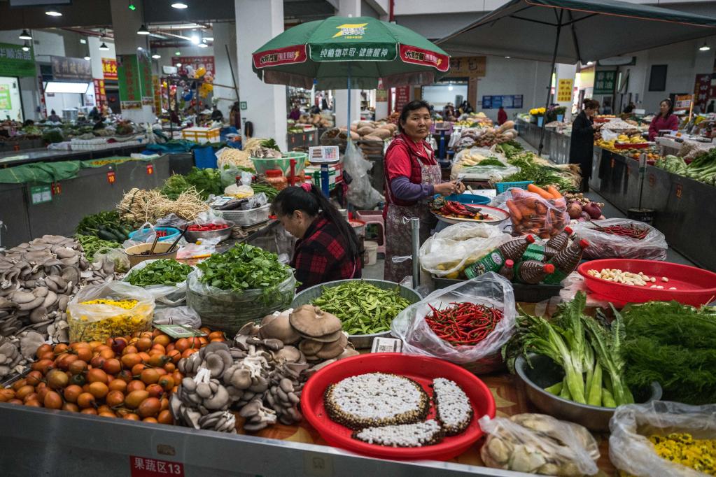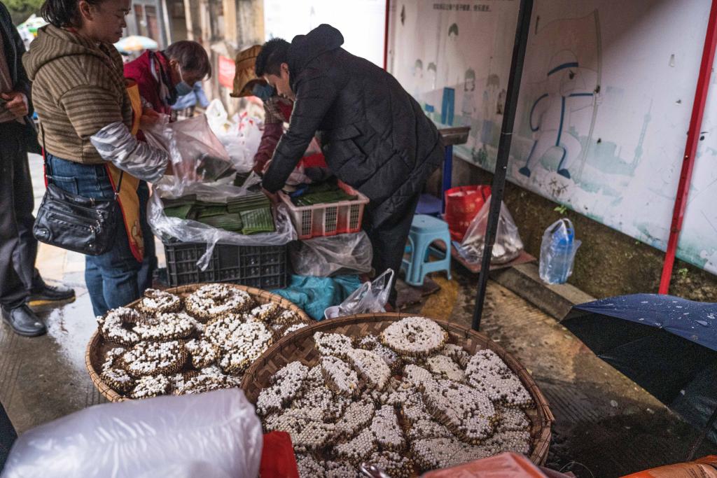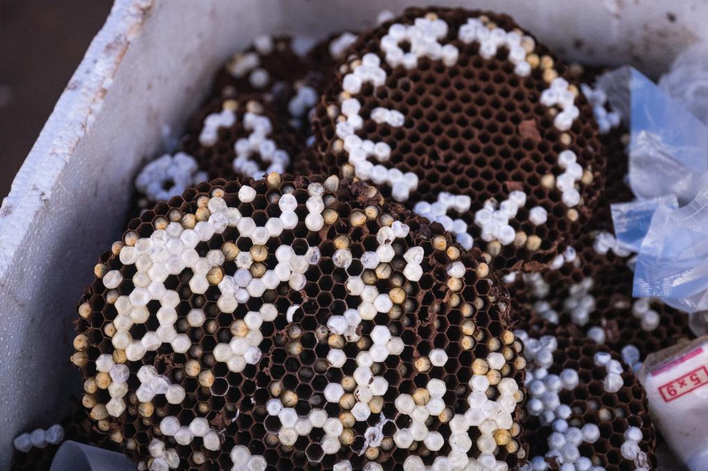 11月20日,商戶在云南省保山市龍陵縣一處農貿市場內售賣胡蜂蛹。