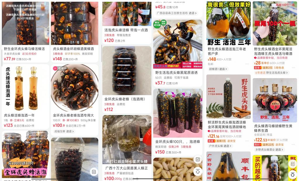 一些網購平臺上的虎頭蜂酒銷售頁面。