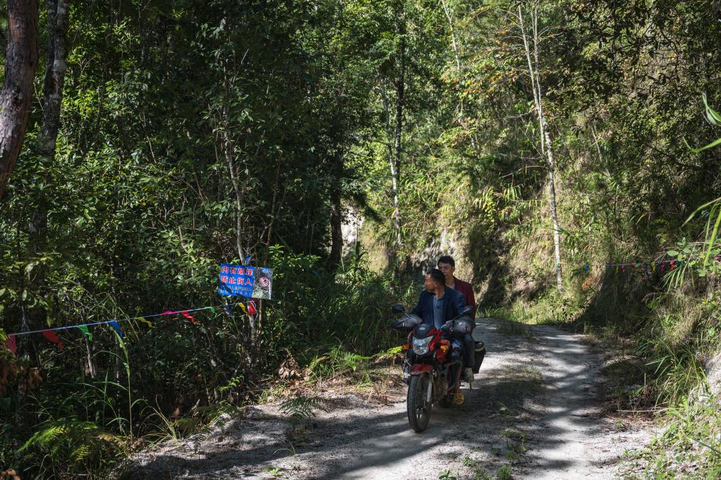 11月19日,在云南省保山市龍陵縣龍山鎮,龍陵縣黃氏蜂業有限公司工作人員騎車經過一處警示標志。