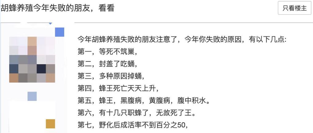 某網絡平臺上,網友交流胡蜂養殖失敗的情況。