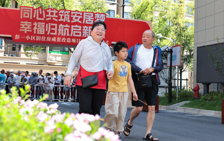 6月29日,首批領取新房鑰匙的居民們走進彭一小區。新華社記者 方喆 攝