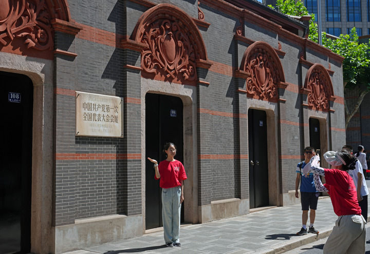 7月1日,人們在中共一大會址前留影。新華社記者 劉穎 攝