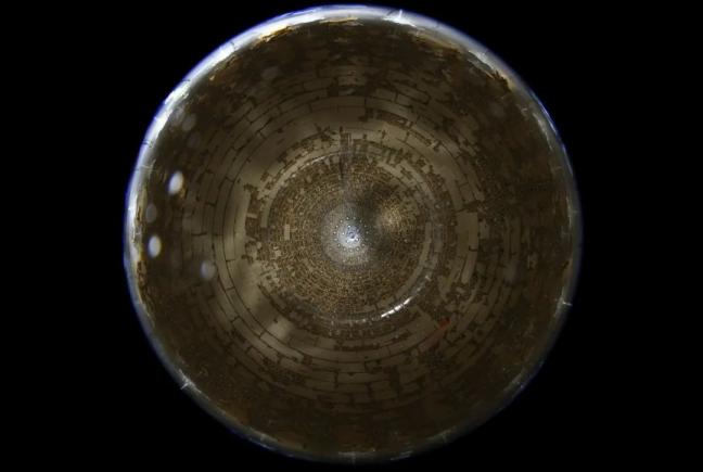 從江門中微子實驗球底拍攝的中心探測器有機玻璃球(2024年11月22日攝)。新華社記者 金立旺 攝