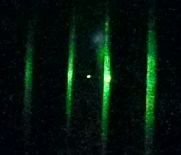 一個由玻璃制成的納米粒子(照片中心附近的白點)被限制在聚焦激光束產生的光勢中。通過檢測納米粒子散射的光,研究人員測量了其質心運動。圖片來源:日本東京大學