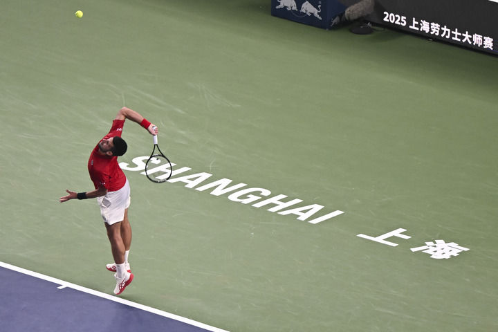 網球名將焦科維奇在2025ATP上海網球大師賽中發球。新華社記者陳浩明 攝