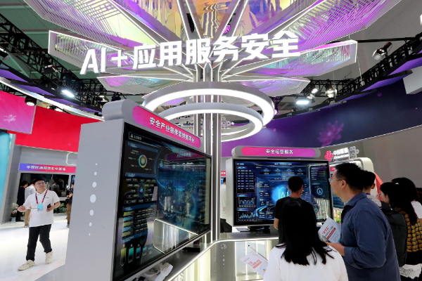 網絡安全博覽會上中國聯通展示的“AI+”網絡安全技術。視覺中國供圖
