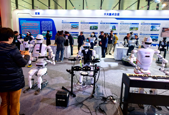 圖為一支“機器人樂隊”在世界計算大會現場演奏。記者 蘇曉洲 攝