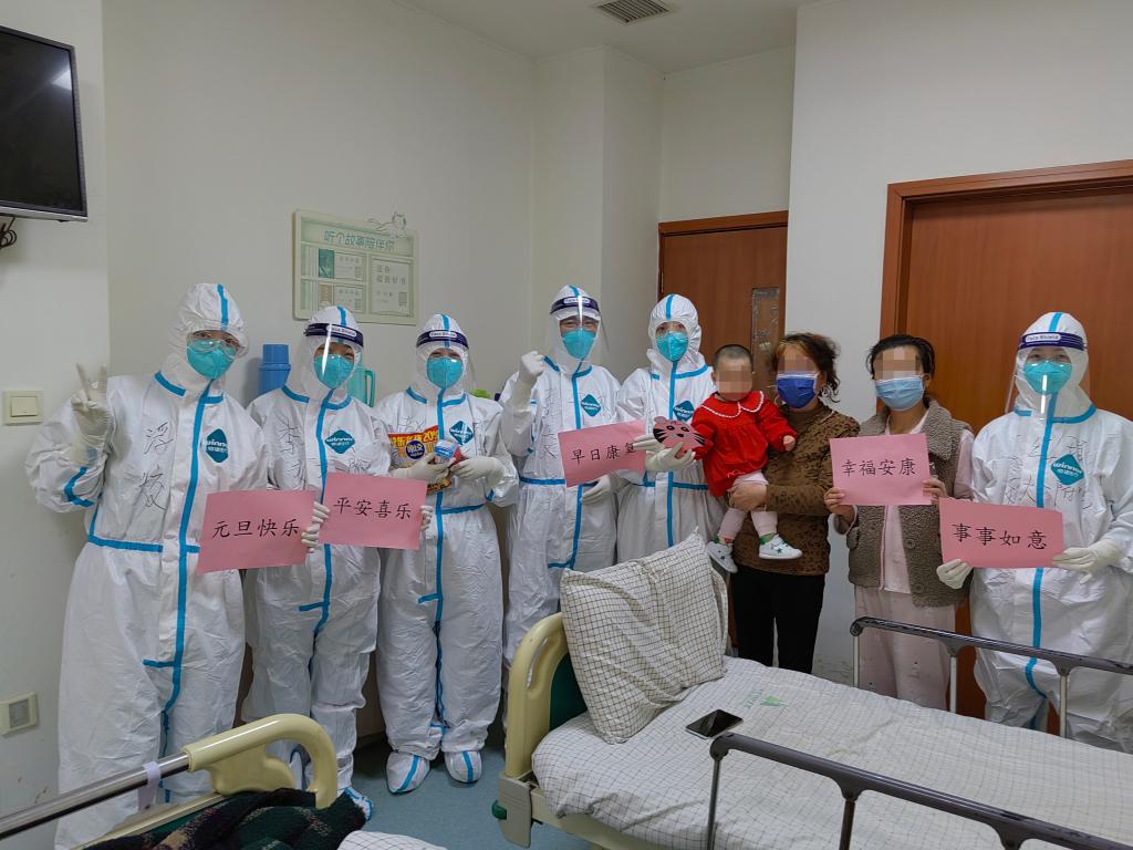 在西安市胸科醫院新冠三科,來自西安交大一附院的醫護人員當起了新冠確診患兒的“臨時媽媽”。