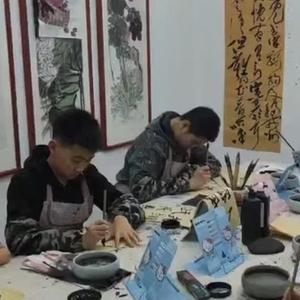 在銀川市一家書畫院,孩子們正在學寫毛筆字和學畫國畫。(受訪者供圖)