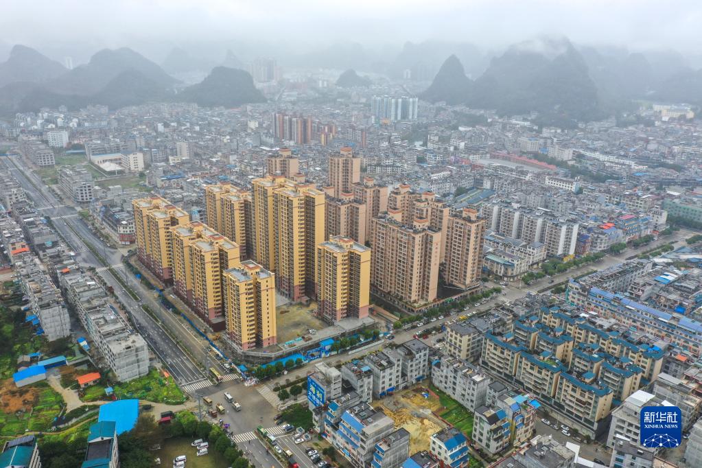 這是2月8日拍攝的廣西百色市德??h街景(無人機照片)。新華社記者 曹祎銘 攝