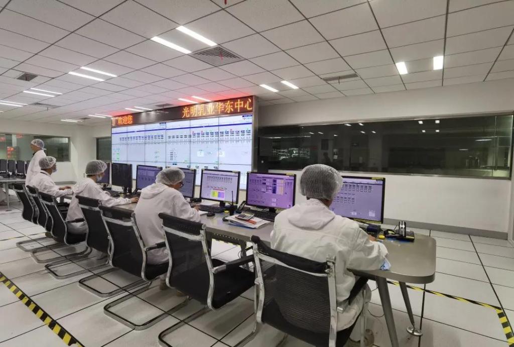光明乳業華東中心工廠內,通過“智慧大腦中央控制室”,數字化操作人員僅通過中央控制室就能對牛奶“了如指掌”。(受訪者供圖)