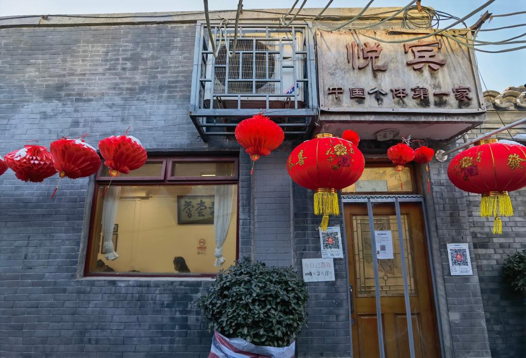二月的北京,春寒料峭。下午5點多,跟隨幾個食客的腳步,記者走進北京市東城區翠花胡同一處掛著大紅燈籠的小飯館——悅賓飯館。