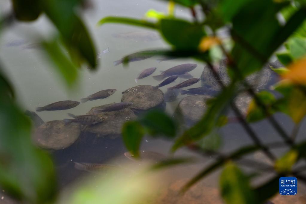 魚群在??诿郎岷永镉蝿樱?月19日攝)。新華社記者 郭程 攝