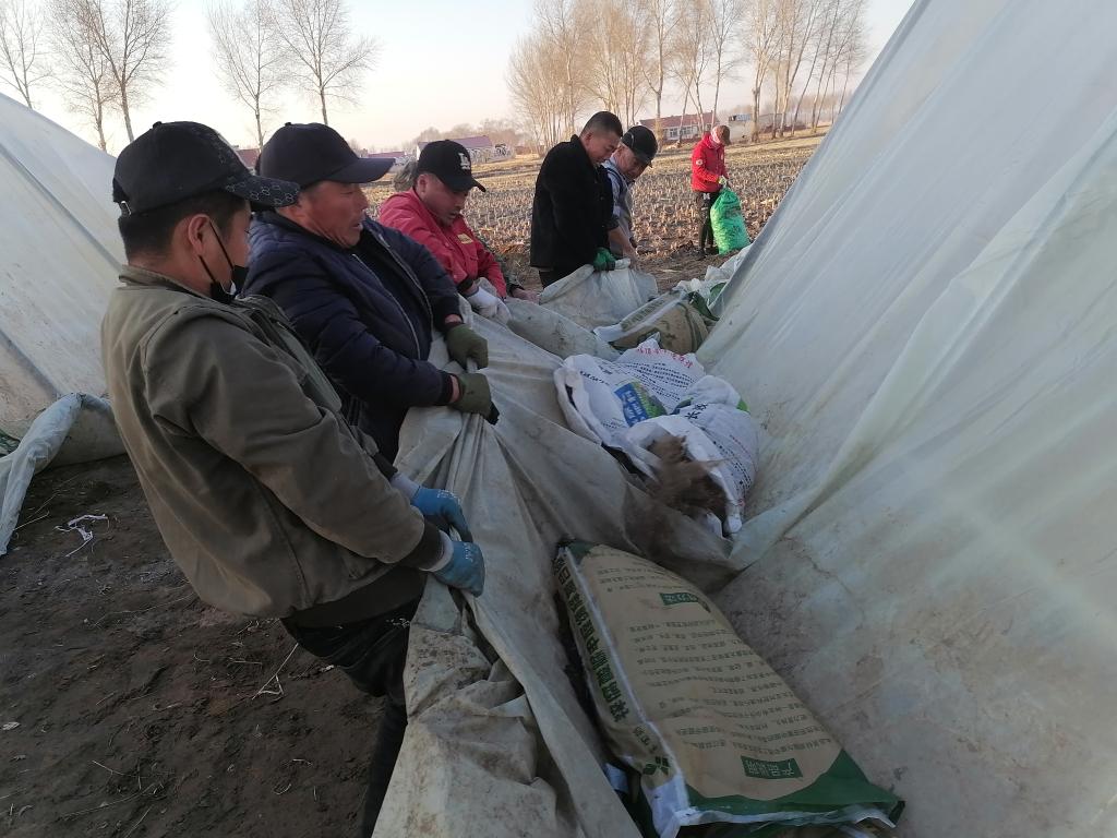 黑龍江省齊齊哈爾市泰來縣平洋鎮戰斗村農戶正在修繕育秧大棚。(受訪者供圖)