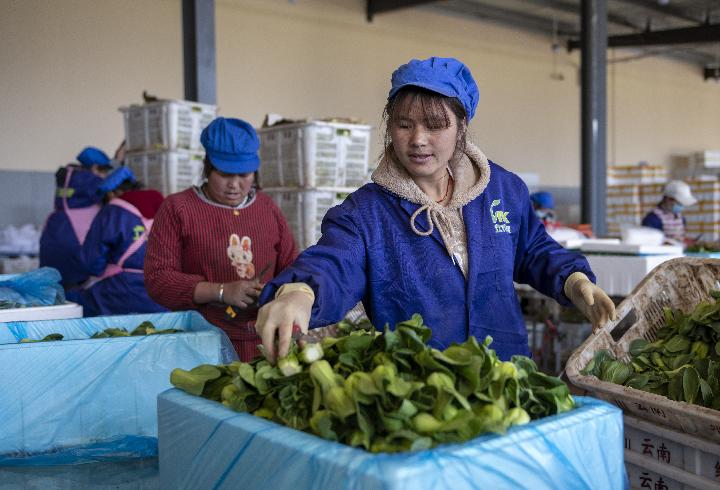 今年32歲的林春熟練地分揀著小青菜。她去年6月辭去昆明建筑工地的活計,回家照顧孩子?!斑@比搬磚輕松,工資差不多,還能顧家?!绷执赫f,搬遷后經社區干部引薦,就近找到一份蔬菜分揀工作,而像她這樣的搬遷群眾約有千人。