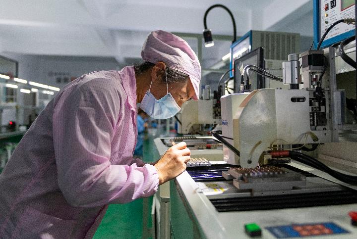 朱穩華在會澤縣縣城易地搬遷安置區奮精電子廠工作。(新華社記者 陳欣波 3月3日攝)