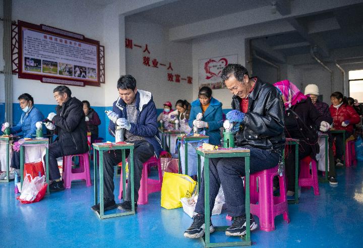 會澤縣縣城易地搬遷安置區群眾在棒球車間縫制棒球。(新華社記者 陳欣波 3月4日攝)