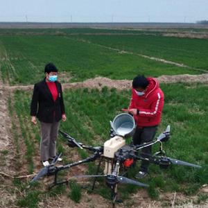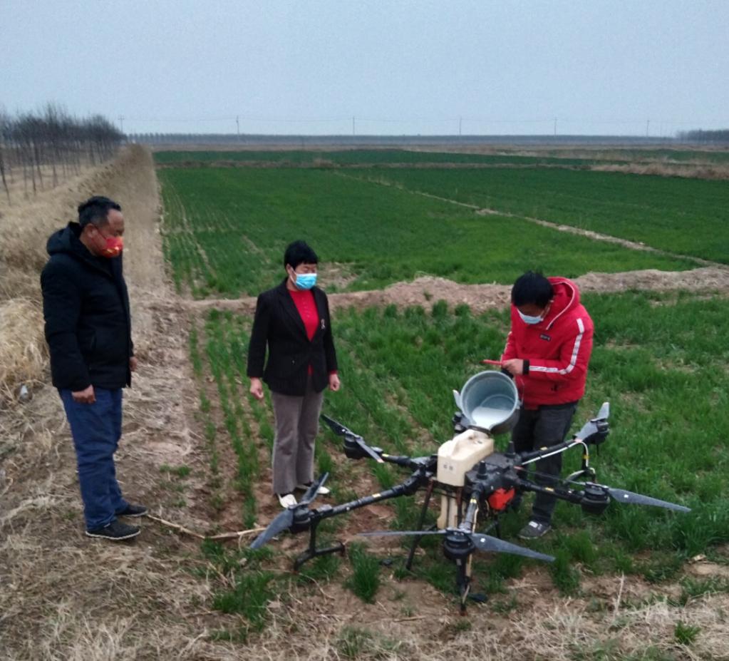 北賈村運用無人機為村民的小麥噴灑農藥。(受訪者供圖)