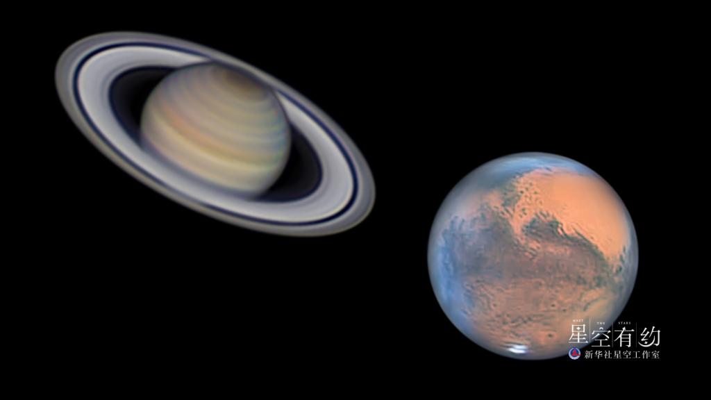 “兩顆行星如此靠近是難得一見的,非常值得觀測。如果觀測時機得當、天氣晴好,有興趣的公眾可憑肉眼看到它們。當然,欣賞時最好使用雙筒望遠鏡,不僅會有‘同框’效果,而且雙星的顏色對比也十分有趣,火星呈紅色,土星呈黃白色?!毙蘖Ⅸi說。