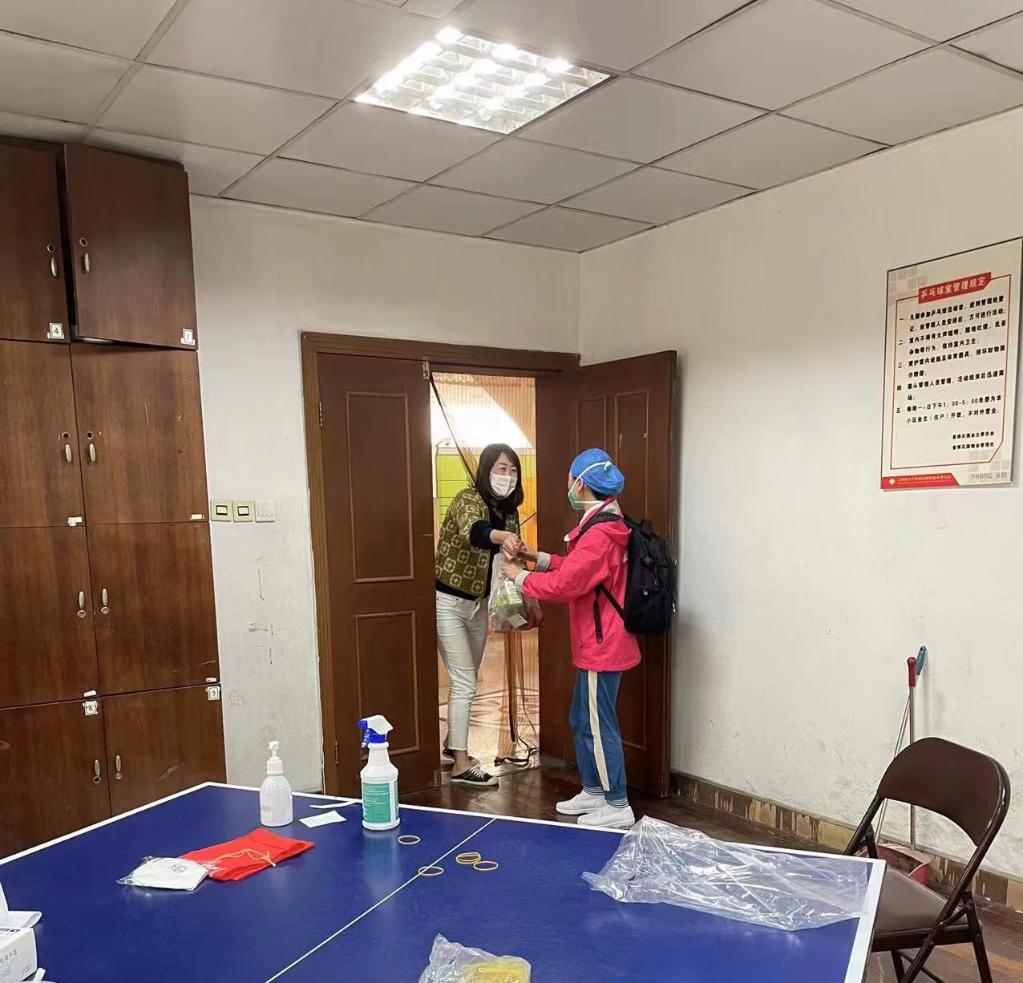 社區居民為即將離開的醫務人員送來水果等物資。(受訪者供圖)