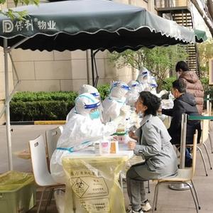 保利香檳社區志愿者配合醫護人員進行核酸檢測。(受訪者供圖)