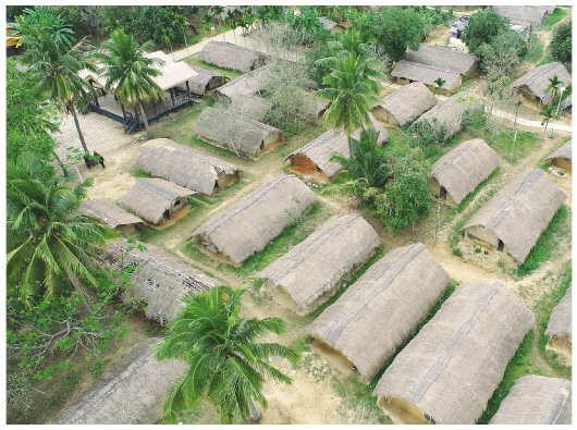在海南,像初保村一樣保持原貌的黎族傳統村落,還有位于東方市江邊鄉的白查村,這里地勢平坦,80多間茅草房整齊排列,頗成陣勢。
