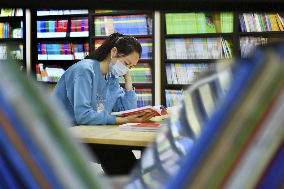 4月22日,四川省廣安市市民在一家書屋閱讀。新華社發(張啟富攝)