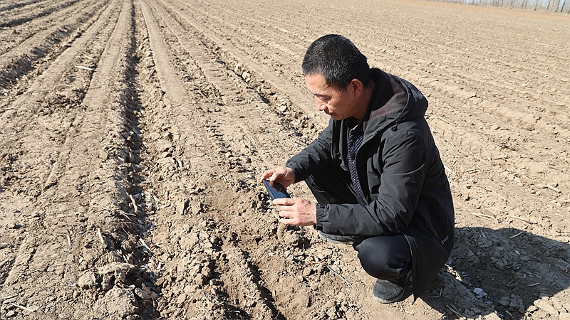 孫京軍正在為家庭農場聯合體成員錄制播種驗收情況視頻。(受訪者供圖)